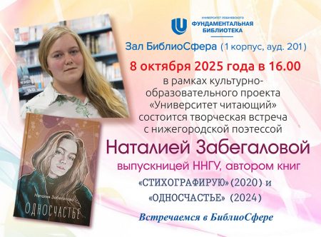 В новом учебном году Фундаментальная библиотека ННГУ продолжает свой культурно-образовательный проект «Университет читающий» и приглашает всех желающих 8 октября в ...