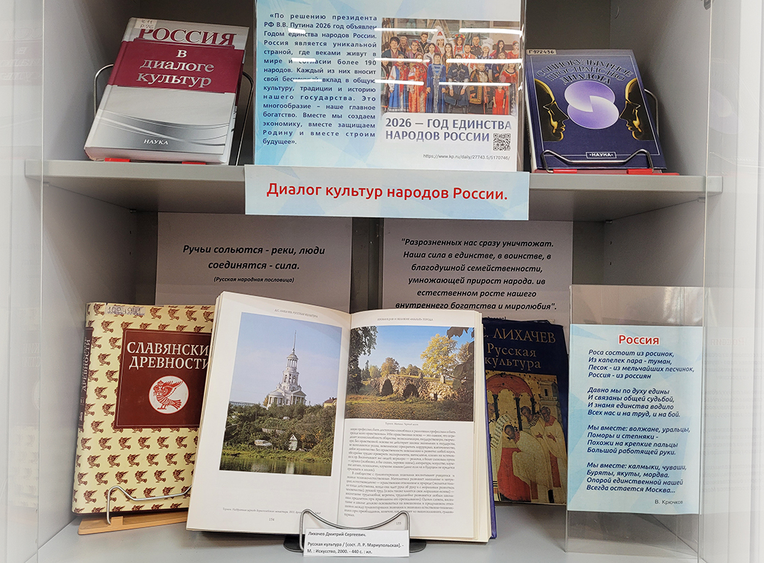 В марте – мае 2026 г. в залах Конференц-центра Фундаментальной библиотеки ННГУ открыта книжная выставка: «Мы – единое целое! (2026 – Год единства народов России).